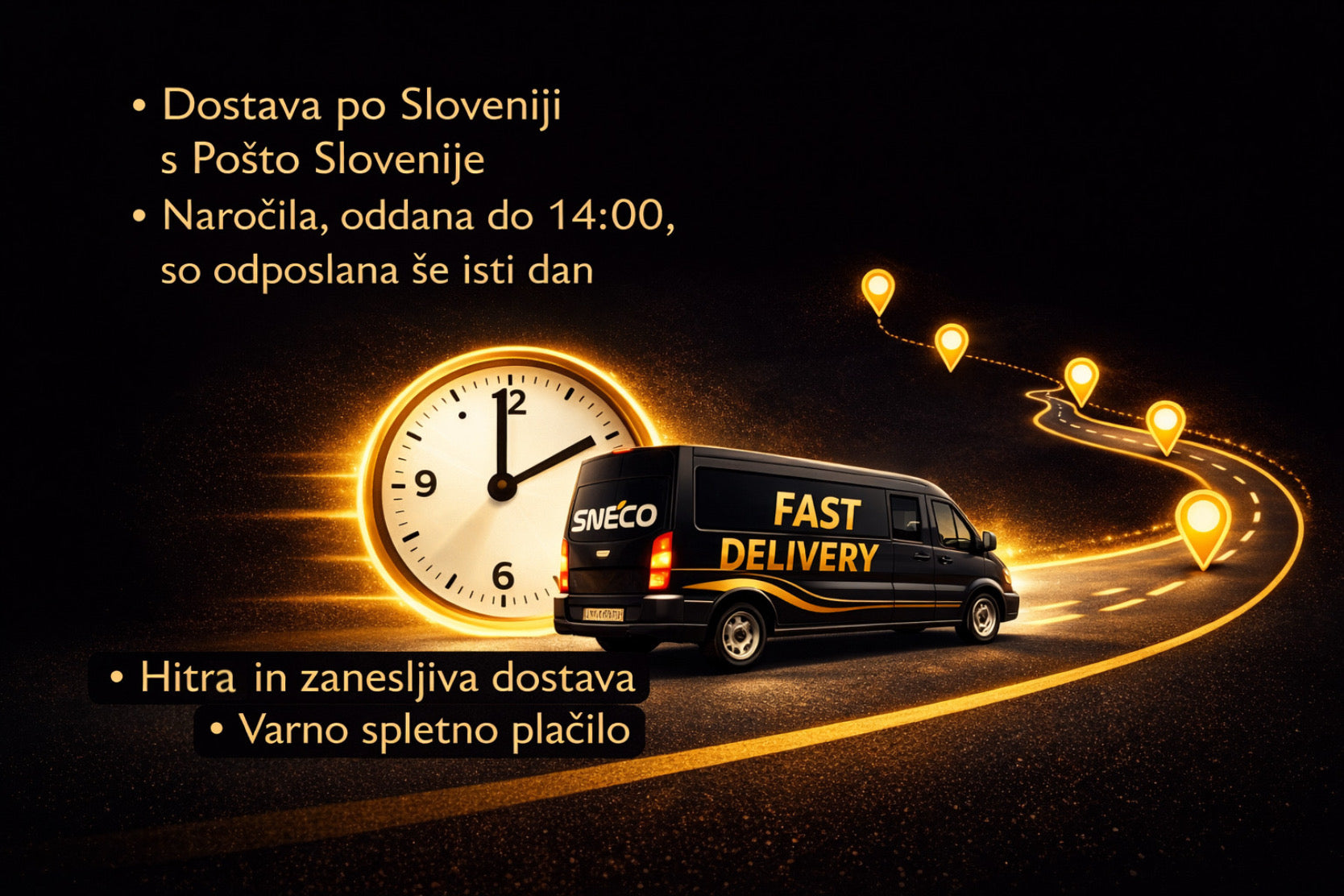 Naročila po Sloveniji pošiljamo s Pošto Slovenije. Naročila, oddana do 14:00, so praviloma odposlana še isti dan.